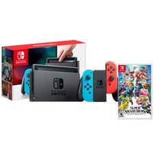 Nintendo Switch with Neon Joy-Con and Super Smash Bros Ultimate